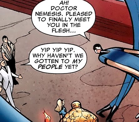 I'm happy to say, that it's always nice to have two people in the same franchise and even in the same comic book that are so incredibly alike, and yet to never even notice the likeness for a long time. These two characters have a lot in common, but still have many differences and little things that make them unique and very fun to read. All the colors and habits aside, Emma Frost and Doctor Nemesis still are completely independent and interesting on their own and that is a cool thing.